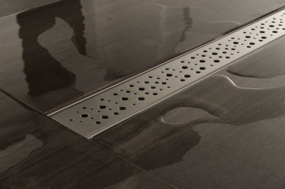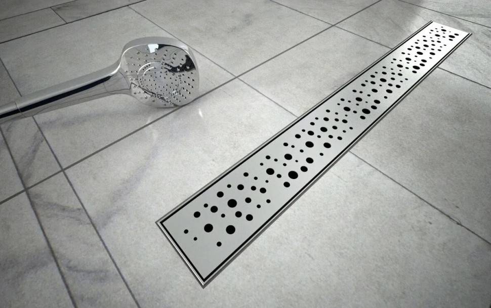 Трап-лоток 70 мм х 750 мм из нержавеющей стали, решетка с круглой ячейкой.