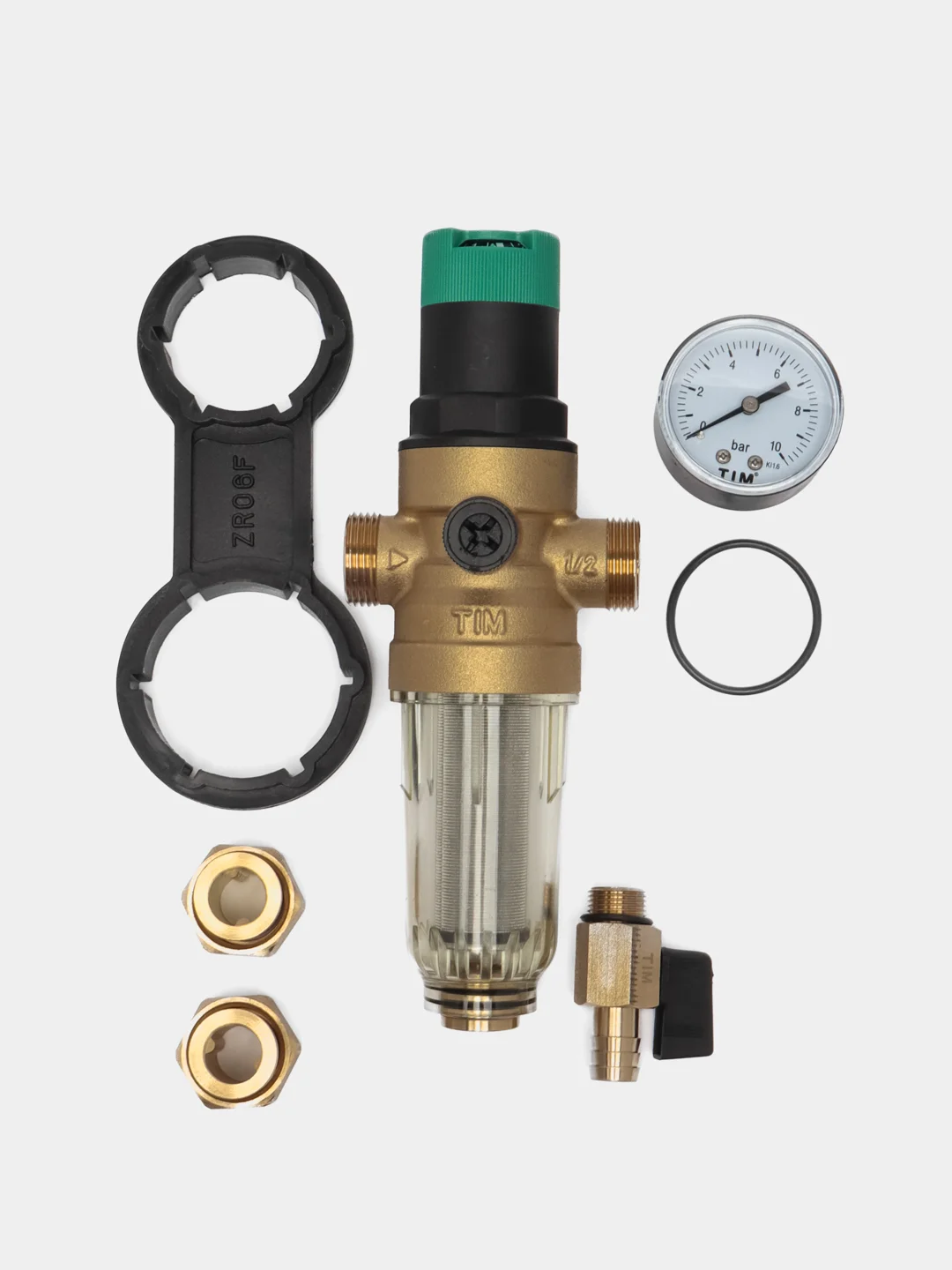 Фильтр тонкой очистки промывной с редуктором давления для холодной воды Tim 1/2" — это надёжное устройство для обеспечения чистой и безопасной водой вашего дома или офиса.