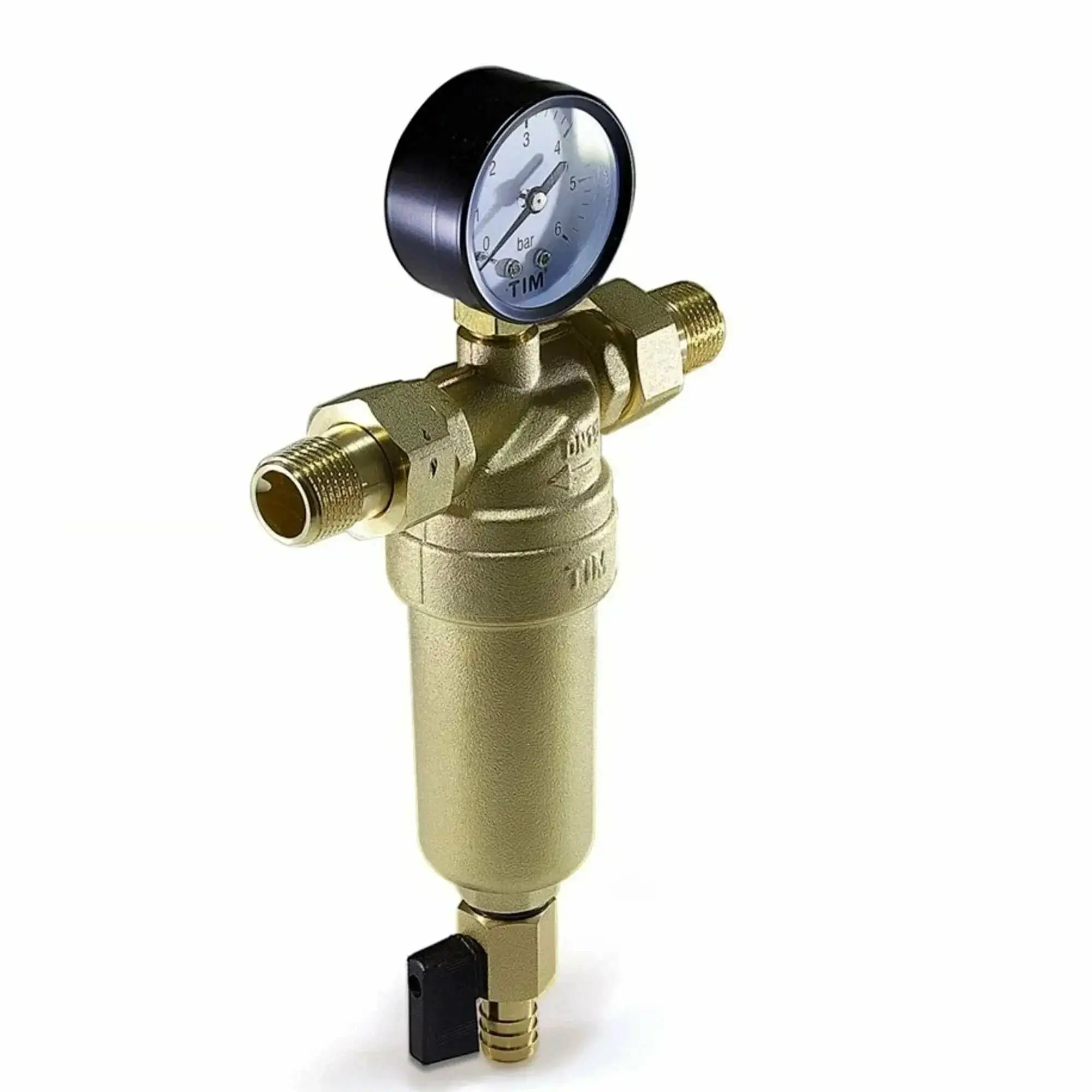 Фильтр тонкой очистки промывной с манометром для горячей воды Tim 3/4 — это надёжное устройство, которое обеспечивает качественную очистку воды от механических загрязнений.