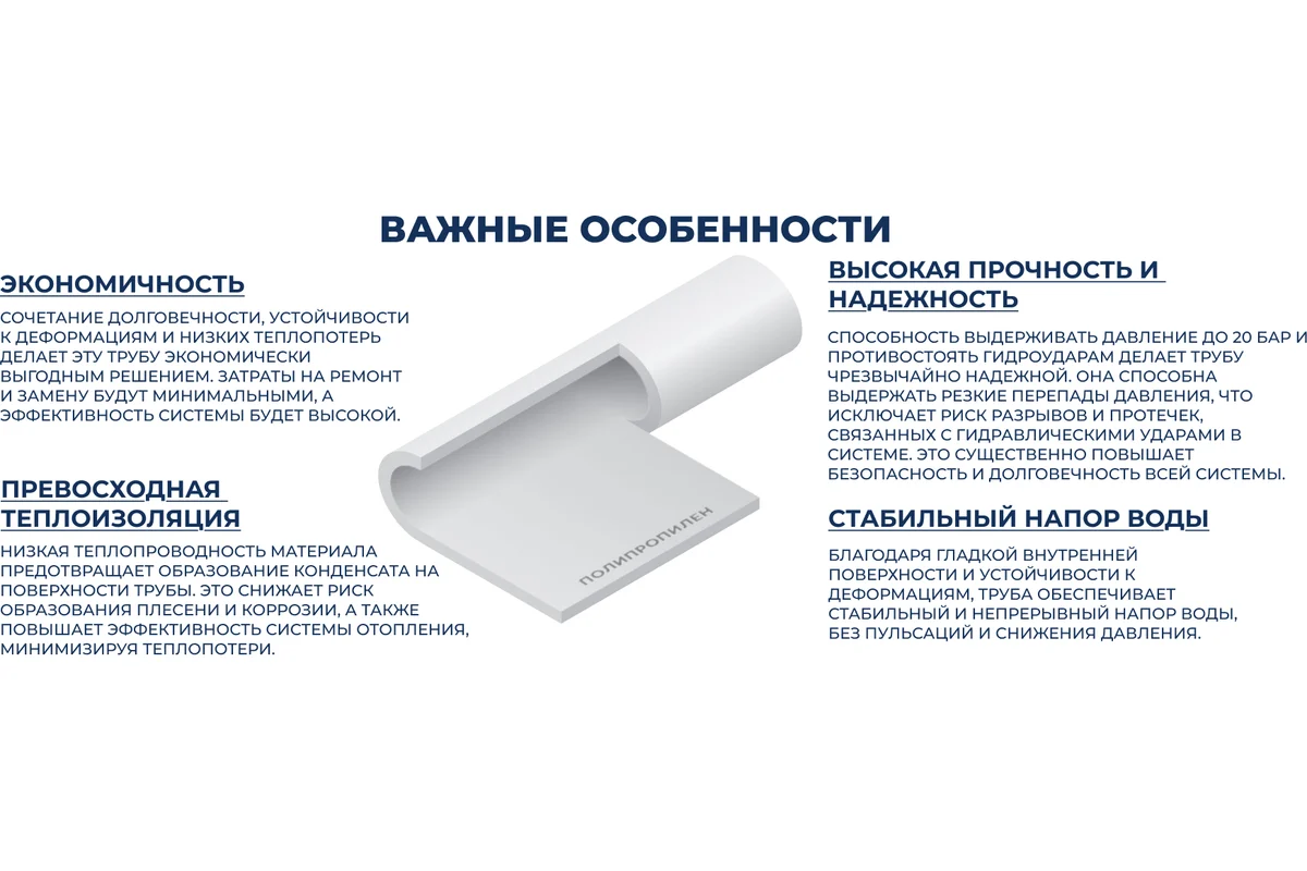 • Материал: Полипропилен (PP-R) - высококачественный, химически стойкий и экологически безопасный материал.